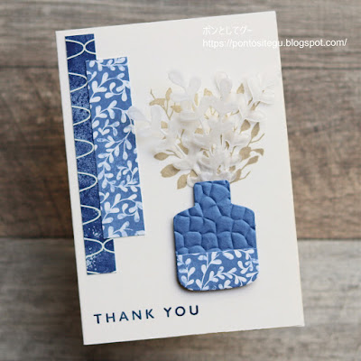 ついでのミニカード。【ボーホーインディゴ】 11月 11, 2020 前回の【ボーホーインディゴ】でCASEのあと、、、ついでにミニカードを作りました。サイズはノーマルカードサイズA6の半分。ミニサイズのサンキューカードは使い勝手が良いです。いつも通りのシンプルカードです。べラムのダイカットの枝葉のバックにもスタンプを押してます。花瓶はダイカットしてからエンボスフォルダーをかけてます。その上にDSPを貼ってツートンにしてます。この潔いくらいシンプルなフォントのセンチメントが素敵です。好きなタイプ。DSPはぎれ大活躍。かなり楽しめそうな【ボーホーインディゴ】ミニコレクションです。 ニュース:12/1から2021 JANUARY–JUNEミニカタログ製品が一般販売されます。詳細はまだわかりません。インディゴ、藍色好き。ブログランキング参加中ぽちっとしてね。 ※※ブログトップページへ戻る※※ 11月の新入り追加 ↓在庫切れちぇっくはこちら↓ 共有 リンクを取得 Facebook × Pinterest メール 他のアプリ ラベル カタログ 共有 リンクを取得 Facebook × Pinterest メール 他のアプリ コメント